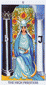 The High Priestess is represented by Isis, goddess of the moon. She is surrounded by a fine network composed of beams of light, a symbol of her spiritual manifestation. Her character is complete and perfect independence. She is in contact with her intuitive capabilities and is able to rely on them absolutely. The perception and ability to listen to one's own inner voice, the inner guide and healer is apparent in responsibility for self and self-confidence. "The Priestess" Tarot card may be an indication of extrasensory perception and intuitive talents such as clairvoyance, telepathy, creative visualization, empathy, intuitive knowledge, and healing powers.