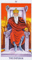 The Emperor is depicted as a crowned man with majestic raiment. His throne, shining in the fiery colors of Mars and the sun. It reveals the other side of the wild ram: true leadership qualities include humble subordination to the laws of the universe. This presupposes deep understanding and constant reflection on the will of the whole. A ruler of this nature is filled by ardent compassion to such as extent that he is willing to sacrifice himself for the good of all. The double eagle symbolizes inner and outer transformation trough the creative potential of the Emperor that points to the beginning of an new undertaking or a new phase of life. This new beginning will expand to new territories, conquer new areas. As long as the Emperor uses his rule to serve transformation and new beginnings, his power is kindly. But, be on the lookout if it is used to fortify what already exists.