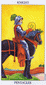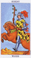 The "Knight of Wands" personifies the mastery of growth and inner development. He has assumed the task of elimination and obstacles which hinder his own growth. Just as retiles shed their skin from time to time because it has got too tight for them, it is now possible to leave behind old and confining ways and to risk a mighty leap forward.