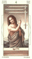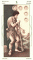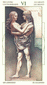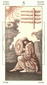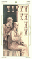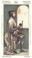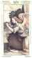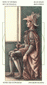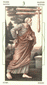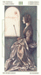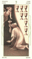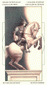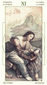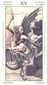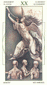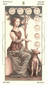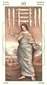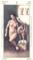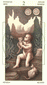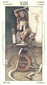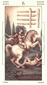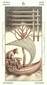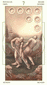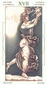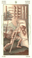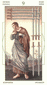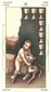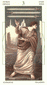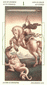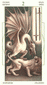 The phoenix heads turn away as if they wish to avoid each other. The card is general description of a state in which the creative energy and power of Leo are blocked (Saturn). The free-flowing energy has been greatly hemmed in a constricted. This pent-up energy is uselessly seeking an opportunity for expression. Life becomes a burden. The little wings underneath are still trying to lift the heavy lead wand.