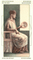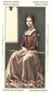 The swollen abdomen of the "Princess of Disks" is evidence of her pregnant state. This is the third card of the motherhood in the Tarot (see "The Empress" and "Queen of Cups"). In a figurative sense, the Princess of Disks is also the mother of a new identity, idea or a new concept. In her left hand she holds a disk, the centre of which displays the Chinese sign of perfect balance (Yin-Yang). The Rose of Isis, the Great Mother of Fertility, blossom from this balance. The harmonious blending of the male and female characteristics within us produces the renewal and well-balanced development of all areas of life. Once the necessary period for close bonding has passed, the hair can flow freely without restraint. The birth of the new has brought light down to earth. Cosmic idea impulses become visible to humans and permeate everything with their divine quality.