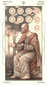 Each manifestation of wealth originates from human consciousness. If this infinite inner treasure is borne outwards into the world, it is reflected in material things. The coins are arranged to from the Tree of Life. This indicates that genuine wealth is expressed in all realms of life. Mercury in Virgo stand for abundance in spiritual, aesthetical and physical avaricious attempt to retain it arises from a conscious or subconscious fear of inadequacy and express the bitter realization of incapacity. Even the greatest treasures lose their worth if they are not utilized to serve love.