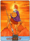 Sagittarius's willingness to communicate is curbed by Saturn, whose rigidness evokes anxiety. Anxiety with respect to one's own strength, vitality. And life force arise out of fear of rejection, disapproval, and punishment. If these vital energies are suppressed, however, they are transformed into fury, anger, and violence. Should this aggression not be outwardly ventilated, it then turns inward and finds expression in self-accusations, depression, even illness. This card calls on you to recognize and put an end to the repression of vita impulses. This is a step forward taking responsibility for yourself, towards freeing you from unjustified moral limits.