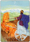 Air in combination with water means intense passion, a characteristic of the astrological sign of Scorpio. That is why this Prince's carriage, which resembles a shell, is being pulled by a Scorpion eagle, a fact which can already be judged as a indication of a future transformation. The carriage drives closely over the waters of emotion but does not get pulled under by them. Whishes and desires must be perceived and recognized. They are fundamental driving forces of our life energy, to use and control them demands the highest degree of watchfulness and infinite care.