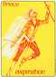The Prince is sitting with his arms spread wide on his fiery chariot which is moving forward at considerable speed. A few areas in the background still show the darkness which he now leaves behind. The overall veering of the person driving the chariot expresses certitude, openness, and freedom. He is naked, which means that he has no need to hide or to protect himself. The Prince personifies the mastery of intuitive creativity (the color green in the flames). All senses are engaged for this purpose and turned to his advantage. By relying on his intuition, his original solutions and ideas are surprising. Nothing can harness or restrain his creative effusions. The blazing fire in the chariot keeps him moving. Due to his devotion to love (lotus blossom in his heart) her surpasses himself.