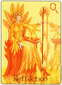 This card signifies the power of free flowing dynamic energy, liberated from restrictions and fears. The bolts of lightning that go in all directions represent the explosive force of this flame. The impact of the bursting energy shakes up and destroys all seemingly secure limitations that we tend to cling to. This break opens up a new door to our true creative potential. Once obstacles have been eliminated, the renewal of all areas of life can begin.