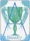 The wile lotus is the symbol for bestowing love. It forms the basis of the cup which bears the color of the water element. A shining beam of energy flows horizontally through the cup's centre uniting the earth and the cosmos. The cup is the medium that serves for the agreement of Above and Below, Internal and External. The Ace of Cups is the feminine counterpart to the Ace of Wands: open, receiving, devoted, carrying with it the transforming force of love bestowed.