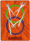The two of swords - symbol of peace - cross within the white-blue rose blossom. Readiness for love and knowledge instead of conflict. Profound spiritual peace (yellow) joins the force of reformation (green). It denotes a state of being which enables one to clarify situations and make intuitive decisions. Inspirations and ideas born at this time are remarkable. You should remember them as a guideline for times when clarity and organization are lacking.