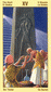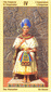 The Emperor is depicted as a crowned man with majestic raiment. His throne, shining in the fiery colors of Mars and the sun. It reveals the other side of the wild ram: true leadership qualities include humble subordination to the laws of the universe. This presupposes deep understanding and constant reflection on the will of the whole. A ruler of this nature is filled by ardent compassion to such as extent that he is willing to sacrifice himself for the good of all. The double eagle symbolizes inner and outer transformation trough the creative potential of the Emperor that points to the beginning of an new undertaking or a new phase of life. This new beginning will expand to new territories, conquer new areas. As long as the Emperor uses his rule to serve transformation and new beginnings, his power is kindly. But, be on the lookout if it is used to fortify what already exists.