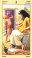 The central sword of clarity is confined by tow smaller swords which are bent and therefore out of harmony. The rose is damaged and is losing its petals. Clarity has disappeared. Dark clouds (doubt, anxieties, worries) limit the expanse of spirit. Saturn, the strict teacher, elucidates all impurities and rules out all excuses. The lesson to be learned here is nothing less than that of mastering negative thought. Brooding and skeptical expectations must clearly be recognized as forces which separate us from our own originality. This card may also refer to three-way relationships that are changed with tension.