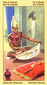 The great sword of clarity is being sabotaged and damaged by six small swords. It thus loses its striking power and authority. The small swords, each bearing the symbol of a different planet, are the pessimistic thoughts that stand in the way of success. The conscious and subconscious mind (sun and moon at the two ends of the central sword) have switched positions. The gloomy expectations of the subconscious obscure clear insight. Vague anxiety controls the individual even through, in reality, everything will turn out for the best. Reality is wearing a different face, and it will soon be possible to laugh at your own doubts.